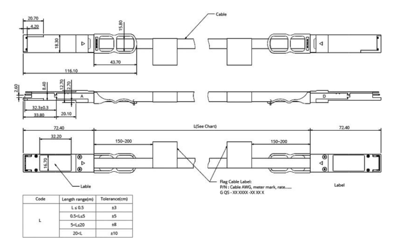 The QSFP-40G-DAC cable fully complies with QSFP+ Multi-Source Agreement (MSA) standards SFF-8436 and IEEE 802.3ba 40GBASE-CR4. It is developed specifically as a cost-effective and lower-power alternative to QSFP+ optical transceivers and QSFP+ active optical fiber (QSFP+ AOC). Cable has been tested and found compatible with most major brand networking vendors (including Cisco, Juniper, H3C, Alcatel and Edge-Core TOR switches).